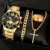 हॉट बिक्री घड़ी सूट 4 पीसी व्यवसाय एनालॉग रिस्टवॉच कैलेंडर तारीख ब्रैसलेट क्वार्ट्ज घड़ी पुरुषों के उपहार सेट के लिए सेट